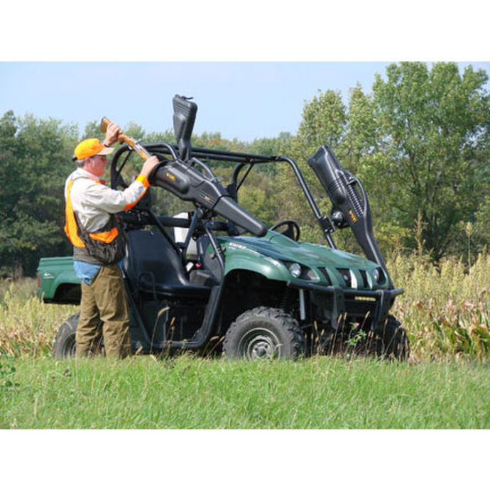 When it's time to head out for an adventure on your ATV/UTV, carry your rifle or shotgun with you safely in one of these Kolpin Boottector brackets. The Boottectors' innovative design enables you the freedom to securely carry your Kolpin Gun Boot, even over rough terrain. The compact Boottector brackets are constructed from tough fiberglass-reinforced nylon with brass inserts for nearly indestructible wear and tear. Kolpin Boottector brackets easily attach to any ATV rack, locking your Gun Boot in by a pin or padlock with versatile gun angle adjustments for a custom fit on your machine. Kolpin Boottector brackets are convenient, compact, and secure. Now you can purchase both as a package.